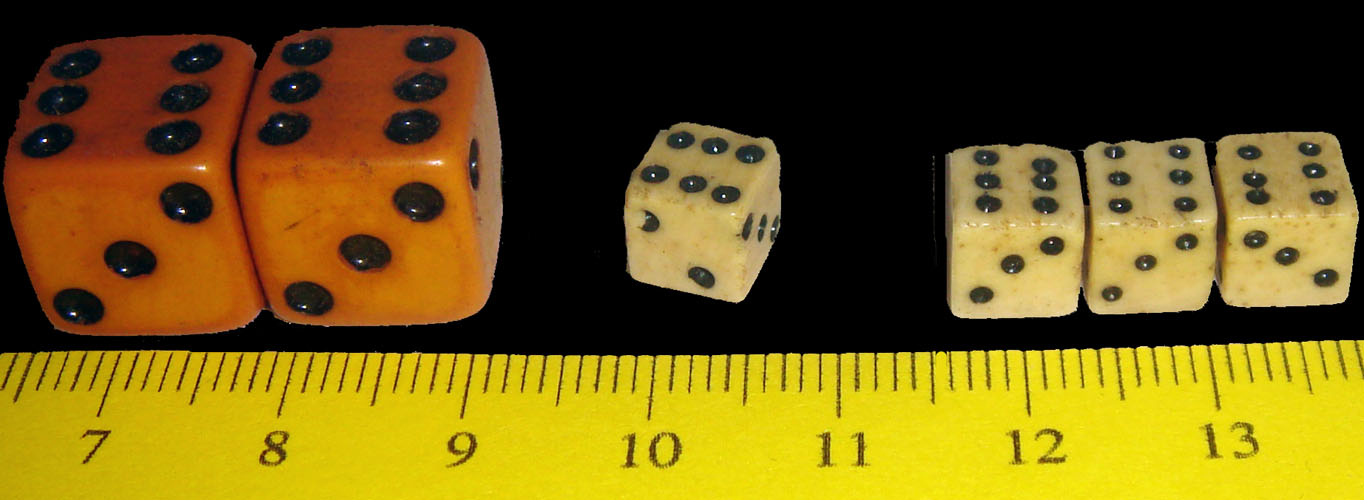 Old dice. Middle one is left-handed.
